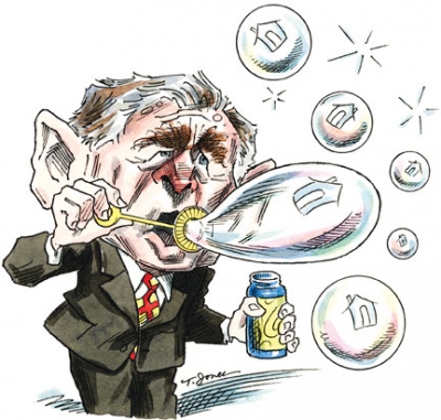 And for some reason, that clever Bill Clinton was able to prevent the entire mess from happening under his watch, but left some ticking time bomb that George W wasn't able to defuse during his two terms - the time when housing prices actually started to skyrocket.
